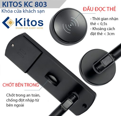 Khóa thẻ từ khách sạn Kitos KC-803 sử dụng thẻ từ khóa IDRF, cảm ứng không tiếp xúc. Model Kitos KC-803 là dòng khóa chuyên cho khách sạn hiện đại với ba tính năng mở khóa bằng chìa cơ và thẻ từ.