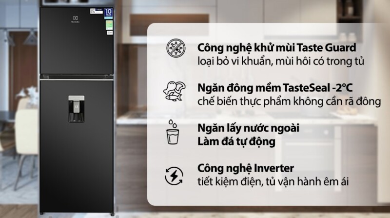 ĐẶC ĐIỂM NỔI BẬT CỦA TỦ LẠNH ELECTROLUX NGĂN ĐÁ TRÊN 312 LÍT ETB3460K-H INVERTER ULTIMATETASTE 300 CÓ NGĂN ĐÔNG MỀM – ĐEN BÓNG
